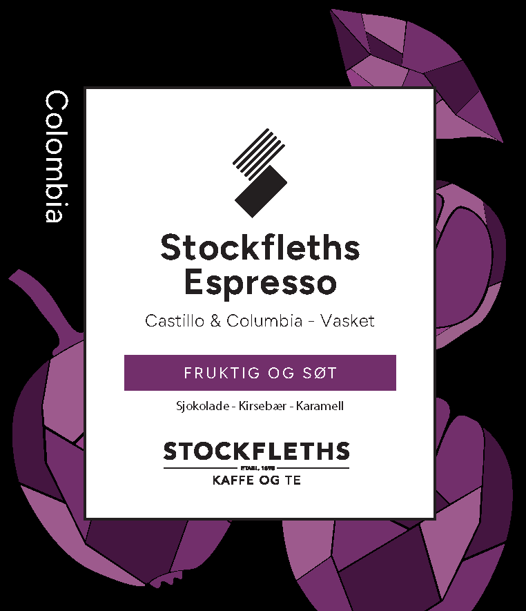 Stockfleths espresso er en singel origin kaffe fra Columbia. Denne kaffen har en fin balanse mellom sødme og fruktighet, og passer fantastisk som espresso – alene, eller med melk. Vi er heldig at Colombia har 2 innhøstings perioder per år, og derfor bytter vi lotter og farm med jevn mellomrom for å alltid ha det ferskeste råvare.